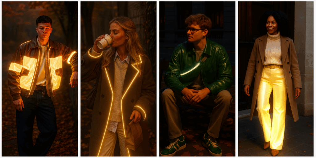 Voici à quoi ressemble le style lorsque l’IA a son mot à dire : réfléchissant, unique et vraiment cool. Les looks montrent à quel point la mode visible peut être polyvalente, du style sportif à l’élégance.