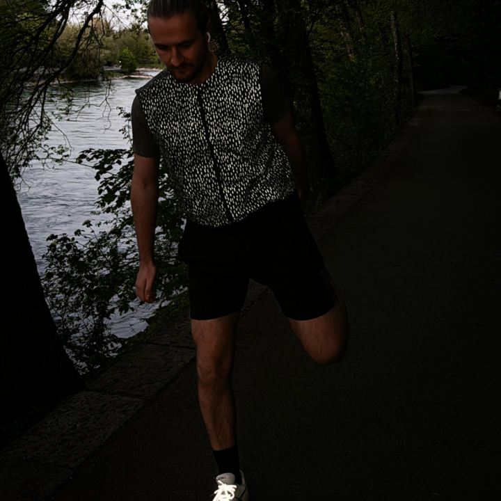 La star de la tenue, c’est le gilet réfléchissant de lululemon : super léger, respirant et avec des réflecteurs pratiques qui te rendent plus visible même à la tombée de la nuit ou dans le noir. Son look sportif et simple va avec toutes les tenues de course et te permet de t’entraîner en toute sécurité.