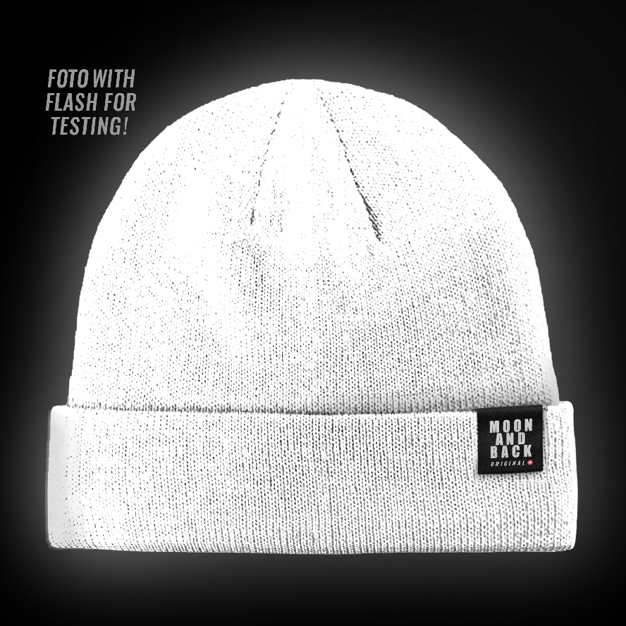 Die Original Folded Beanies © halten dich im Winter warm: Die Mütze ist mit Innenflies in Bergsportqualität ausgestattet, ist nicht feuchtigkeitsstauend und ist  schnelltrocknend. Sie ist vollreflektierend und macht dich bis zu 150 Meter sichtbar. Produkt mit Designschutz CH/EU Anfrage/Retail contact@moonandback.swiss