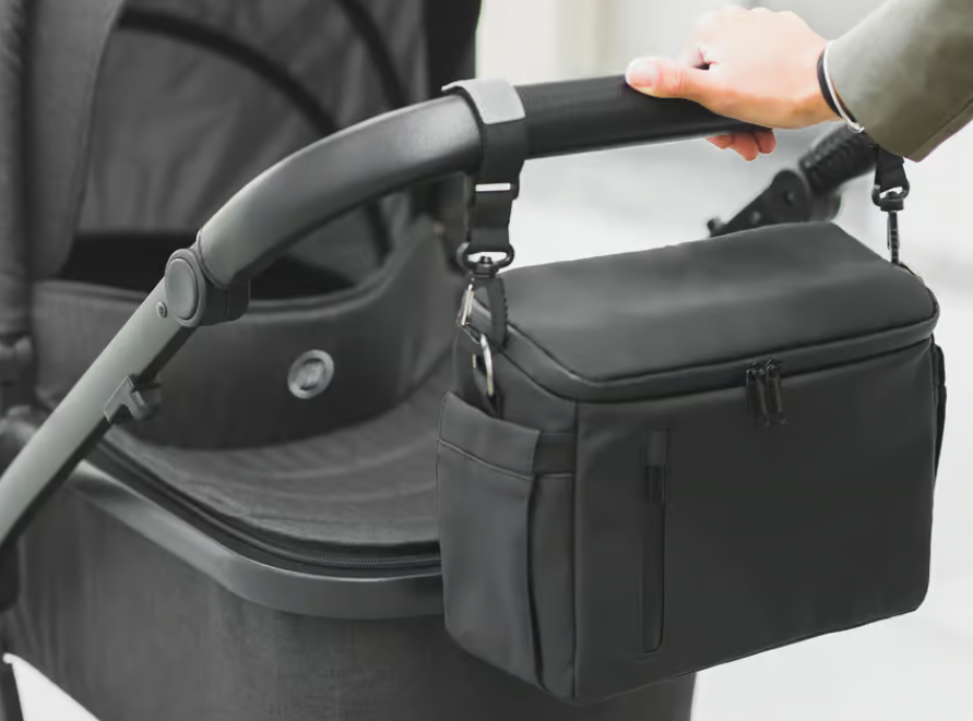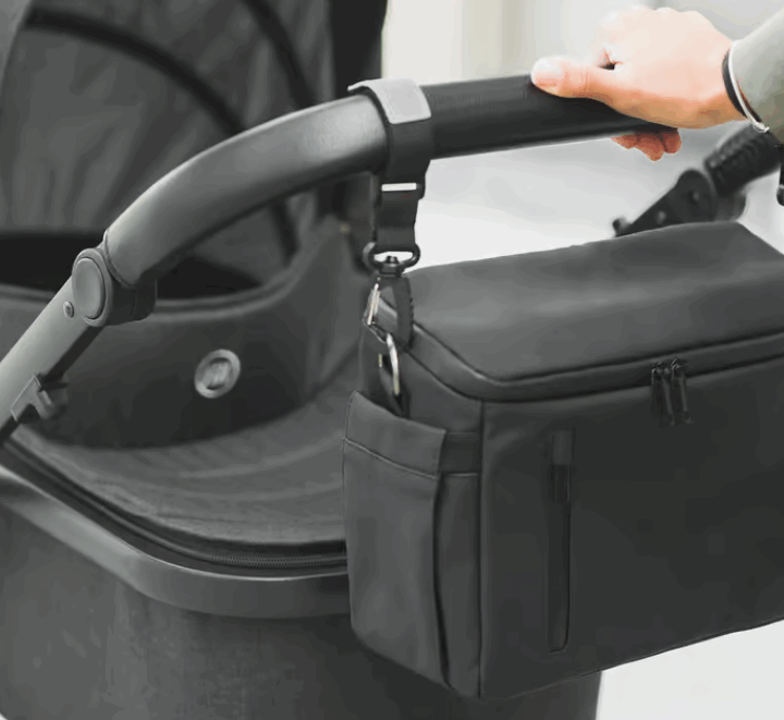Dank der zusätzlichen Befestigung kann der Organizer mühelos an jedem Kinderwagen oder Buggy angebracht werden. Die Wickelunterlage ist geschickt im hinteren Teil des Organizers versteckt, ebenso wie der zusätzliche Schultergurt – so kannst du den Organizer Adventure Mini ganz entspannt als stilvolle kleine Tasche tragen, wenn der Buggy einmal stehen bleibt.