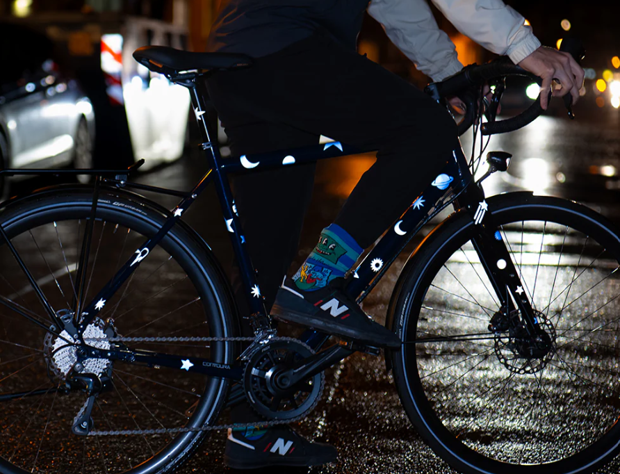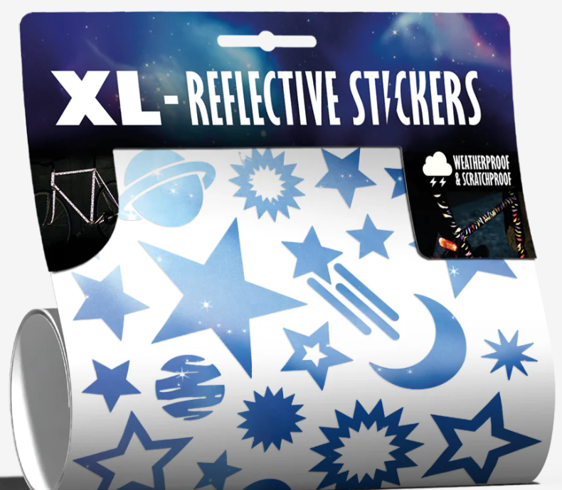 Bring Sterne und Planeten direkt auf Dein Bike und mach jede Fahrt zum kleinen Nachthimmel. Große reflektierende Formen geben Dir sichtbare Sicherheit und ein funkelndes Highlight im Abendlicht.