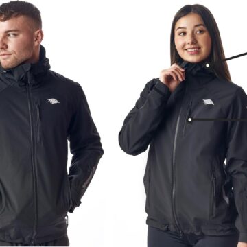 Reflektierende Softshelljacke mit abnehmbarer Kapuze in schwarz/grau, winddicht & wasserabweisend